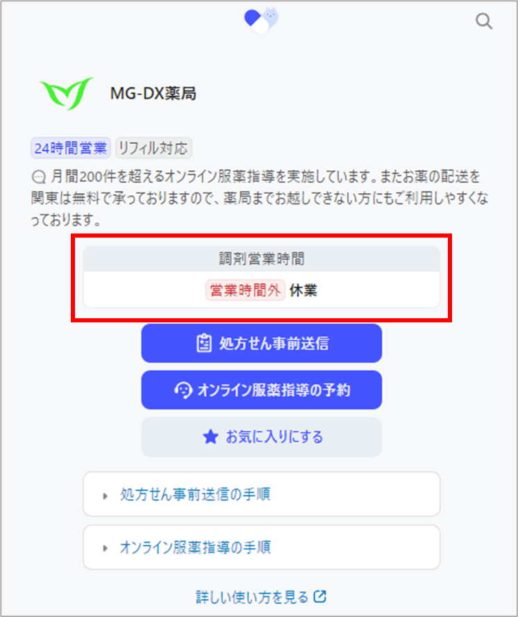 薬急便の営業時間の変更・休業設定方法は、薬局各社により異なります。
