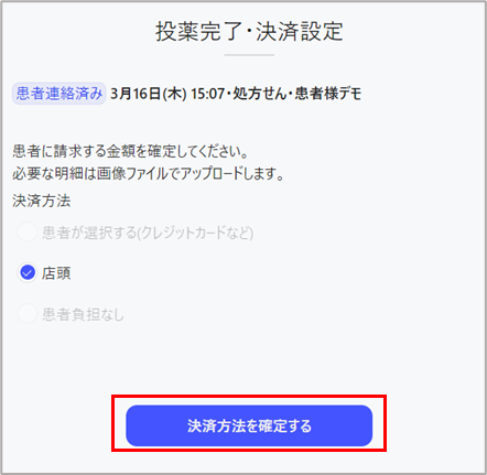 1. 投薬が終了した患者さんの投薬/決済欄の「完了する」を選択