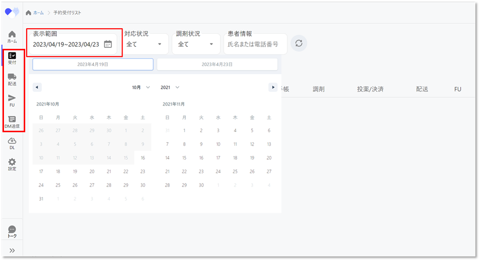 - 情報漏洩時のリスクを軽減するため、薬急便管理画面から参照できる情報の期間を制限します