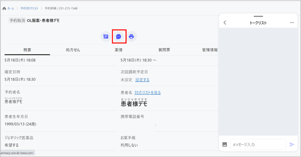 ※開始時刻の15分前になると予約状況が「服薬指導待ち」に変わり、
