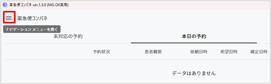 薬急便コンパネで「≡」を選択